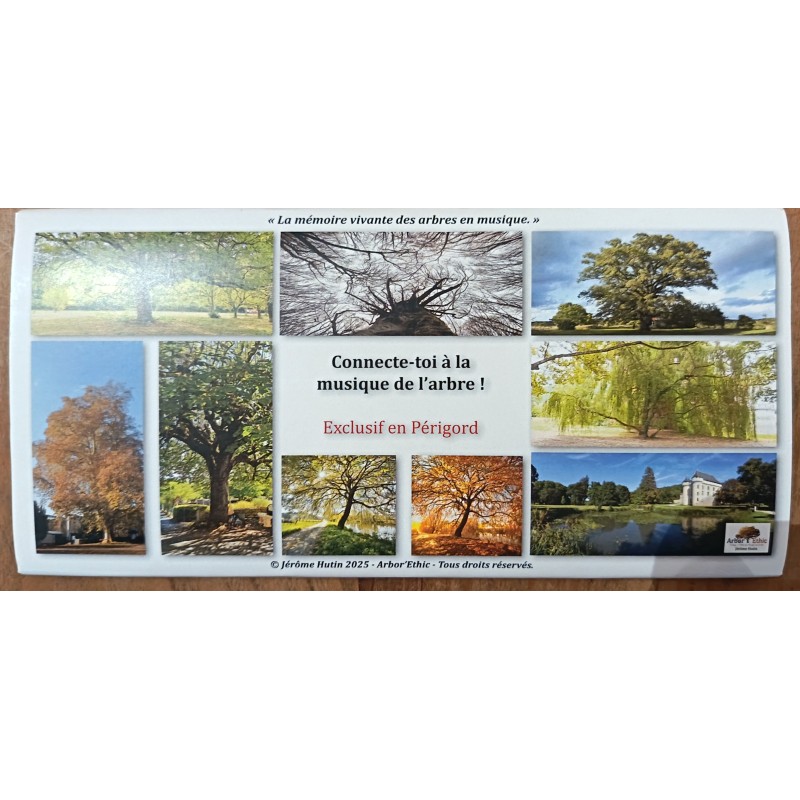 Le coffret "Musiques arbres 001" représente des arbres du Périgord et de la Vézère.