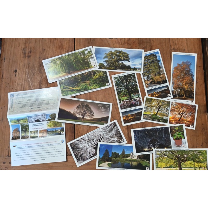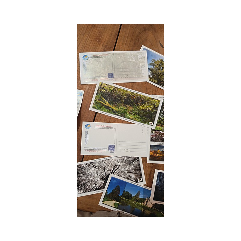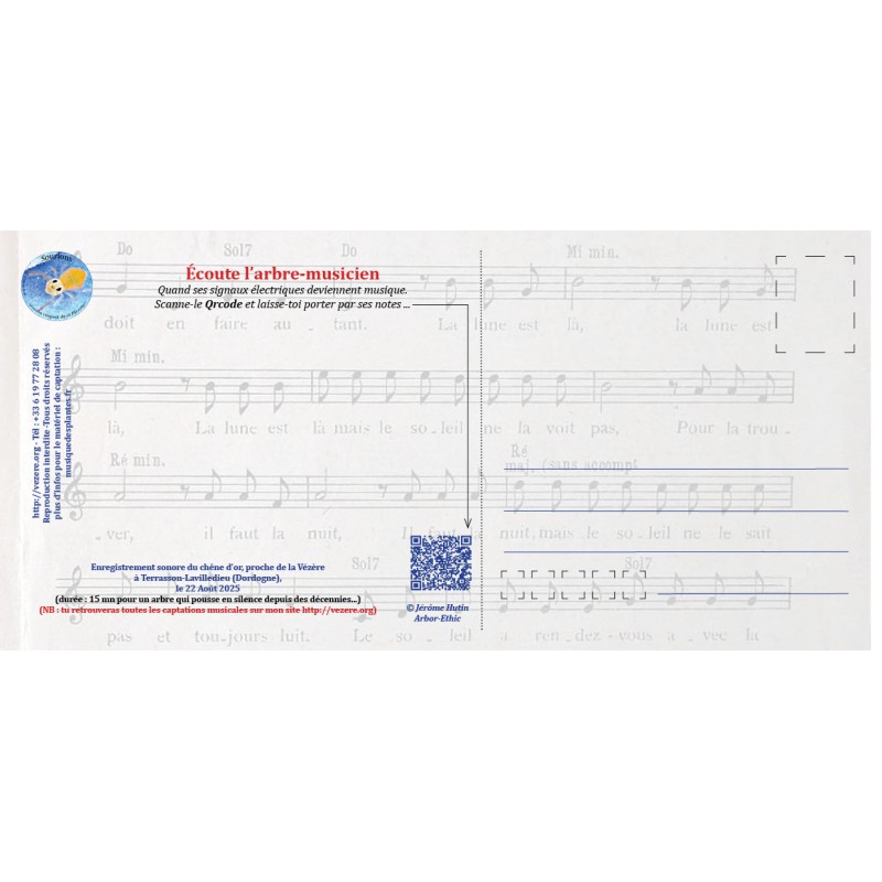 Chaque carte représente la photo d'un arbre et un Qrcode pour permet d'écouter sa musique, qui sont des micro-vibrations électriques transcodées en notes de musiques.