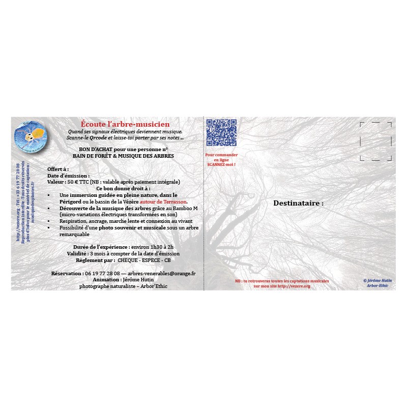 Qu’il s’agisse d’un bon d’achat (bain de forêt, musique des arbres), d’un tablier artistique, d’une lampe-photo, d’un tirage ou d’une création textile, vous achetez ici bien plus qu’un objet :