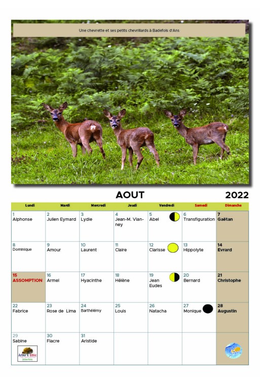 Ce calendrier est imprimé en Périgord ou en Corrèze proche de la Vézère. Mise en page de Jérôme Hutin.