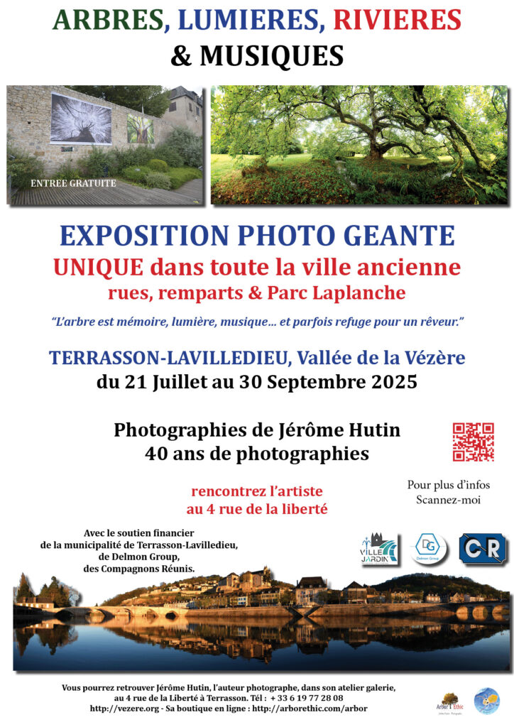 Ses grandes expositions photographiques sont disponibles à la location, cliquez ce lien : https://vezere.org/index.php/2023/04/22/arbres-tresors-vivants-de-la-planete/